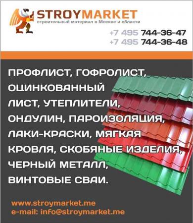 Компания «STROYMARKET» — большой выбор строительного материала: профлист, гофролист, винтовые сваи, оцинкованный лист, фанера, утеплители, пароизоляция, лаки-краски, мягкая кровля и мн.другое. Собственная логистика. Гибкая система скидок.