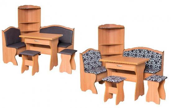 Преимущество этой модели, угловая полка, высотой 1,5 метра.Очень удобна для хранения сыпучих ингредиентов. В уголке предусмотрено место хранения,имеются ящики под каждым сиденьем. Предусмотрен ящик в столе, для хранения столовых приборов