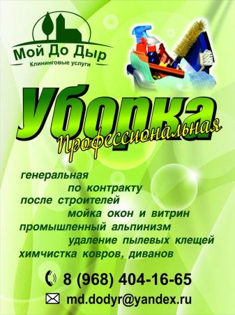 Профессиональная уборка ВАШЕГО дома/офиса. Профессиональная химия и техника,специально обученный персонал. Качество и надежность. Все это предлагает компания «МОЙДОДЫР». more